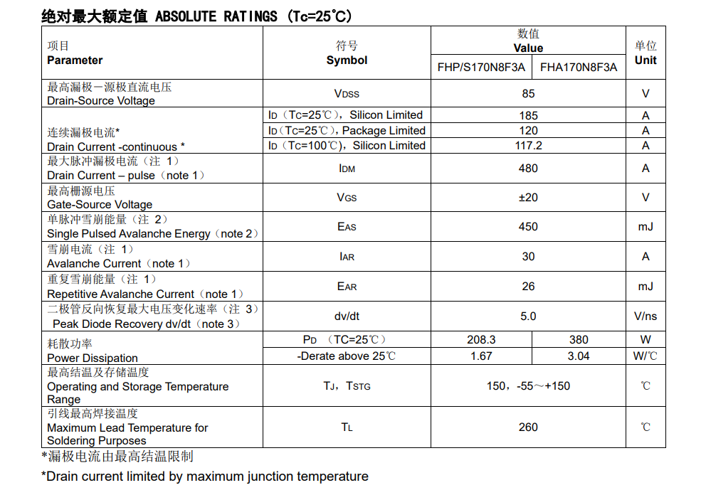 因此,对于寻求STP170N8F7等国际品牌替代方案的工程师,170N8F3A在关键性能上的对标与超越,使其成为一个稳妥且具性价比的选择。