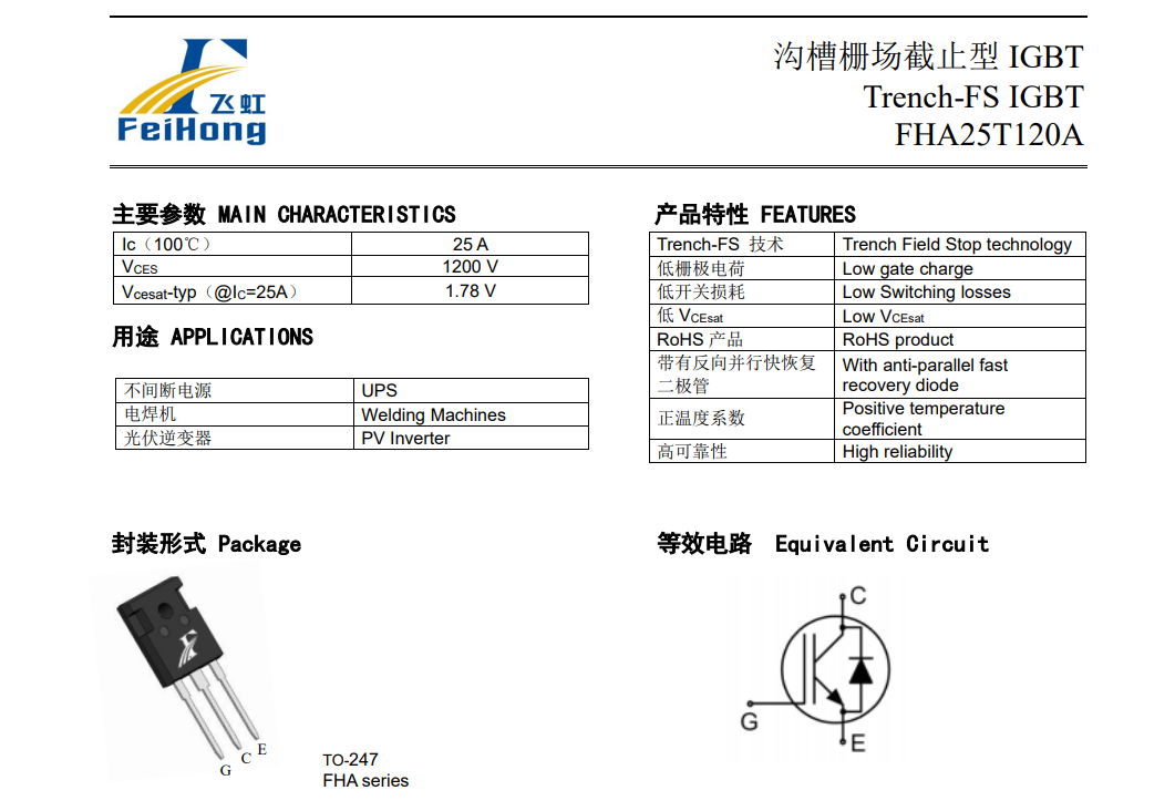 国内FHF20T60A型号可常用正弦波输出逆变器。飞虹半导体igbt管工厂全力以赴为高频逆变器、户外移动电源等电子厂商提供最适合的元器件供应保障。详情亦可百度搜索“飞虹半导体”或拨打免费试样热线: 400-831-6077!